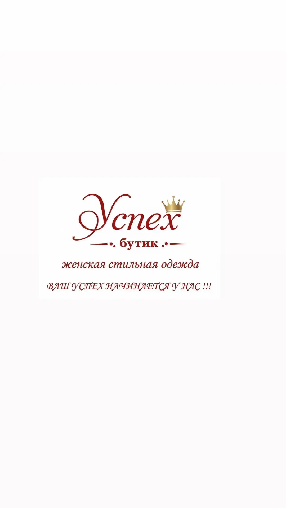 Магазин женской стильной одежды "Успех" 👗✨ — место, где ваш образ обретает уверенность 💃, элегантность 🌟 и неповторимый стиль 💎. Ваш успех начинается у нас! 🎀