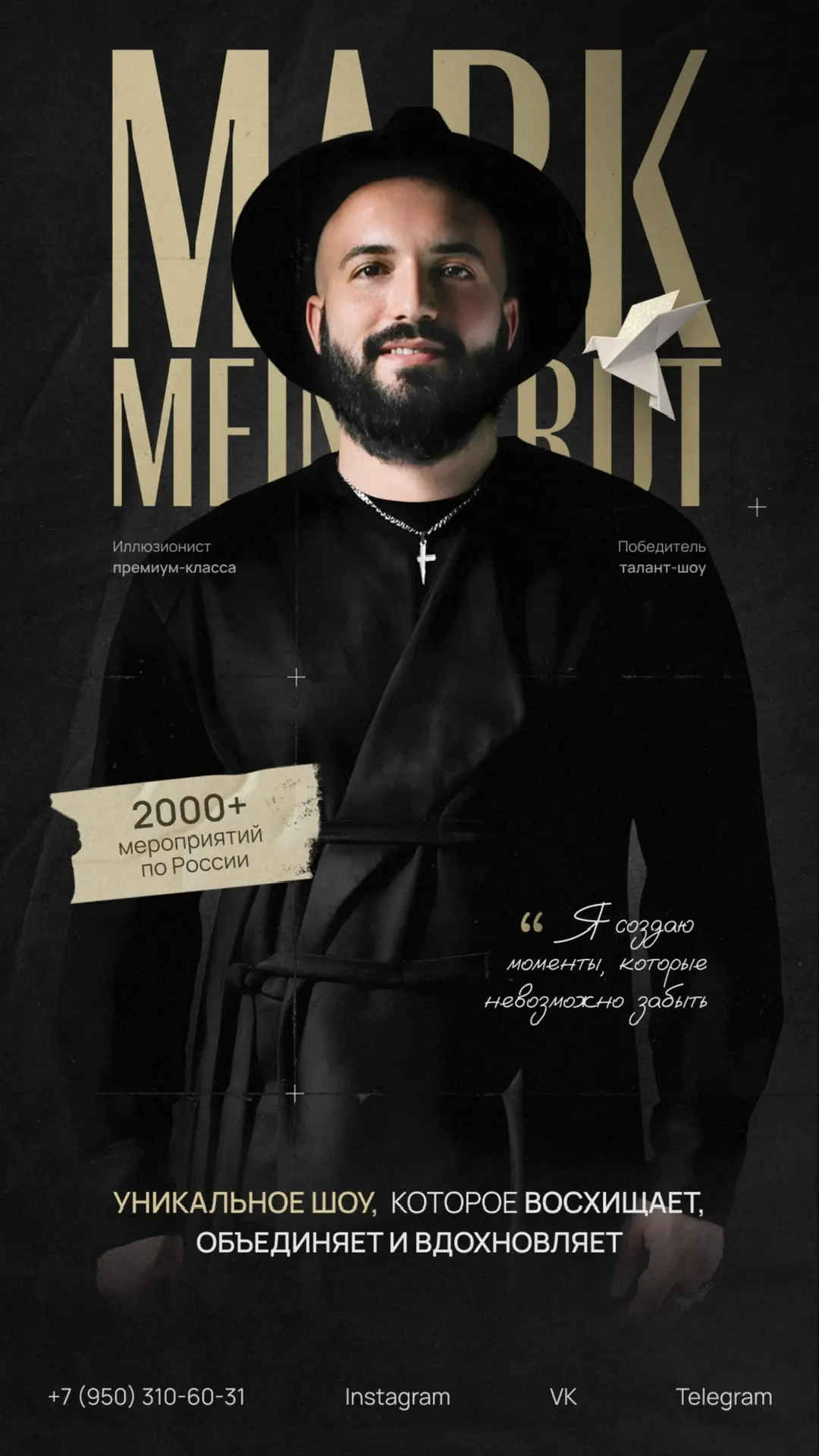 ▪️ Иллюзионист премиум класса ▪️ Финалист/Лучший артист Приволжья Wedding Awards 25 ▪️Победитель шоу талантов