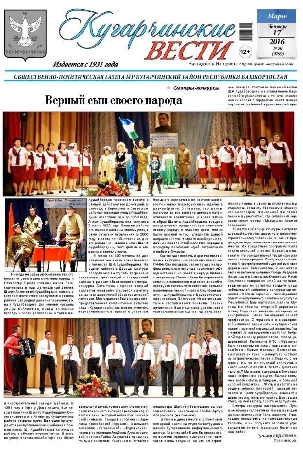 Подписаться на Кугарчинские вести (СМИ)Кугарчинские вести (СМИ) в каталоге MAXtrend