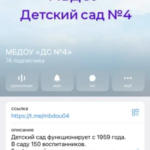 Канал МБДОУ "ДС № 4" — это популярный канал в мессенджере MAX. На канал подписано 129 человек, опубликовано 106 постов с актуальным и интересным контентом. Следите за обновлениями канала Канал МБДОУ "ДС № 4" и будьте в курсе последних событий.