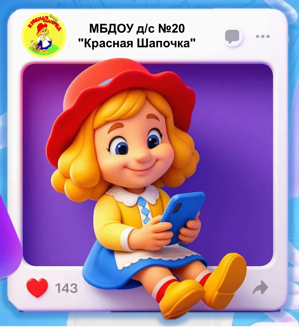 МБДОУ д/с № 20 "Красная Шапочка" — это популярный канал в мессенджере MAX. На канал подписано 131 человек, опубликовано 199 постов с актуальным и интересным контентом. Следите за обновлениями канала МБДОУ д/с № 20 "Красная Шапочка" и будьте в курсе последних событий.
